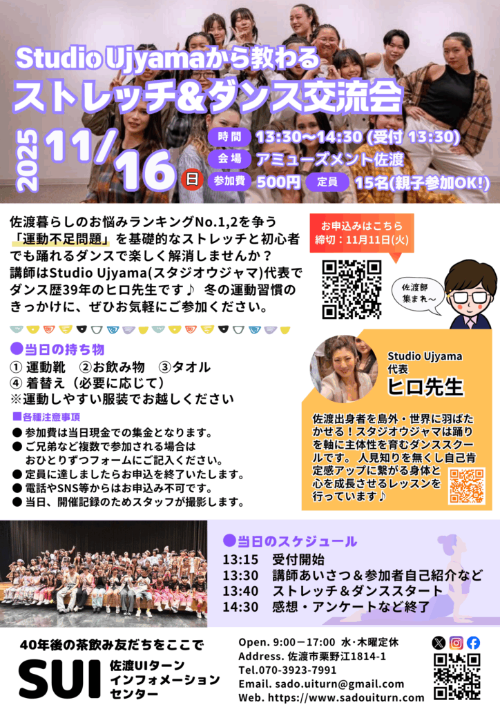 11月16日(日)13:30~14:30 Studio Ujyamaから教わるストレッチ&ダンス交流会