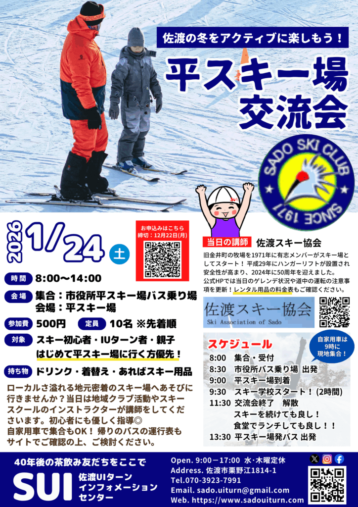 集合場所:佐渡市役所前平スキー場バス乗り場(金井コミュニティセンター)