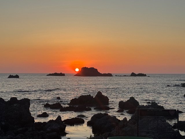 肺の奥まで澄み渡るような朝の冷たい空気、海面をキラキラと照らす昼の眩しい光、そして水平線に夕日が沈むと同時に訪れる、耳鳴りがするほどの深い静けさ。環境の変化が自然な節目になり、張り詰めていた緊張の糸がふっと緩み、思考もいったん止まります。