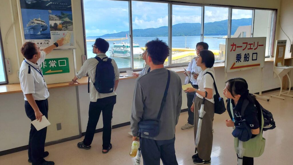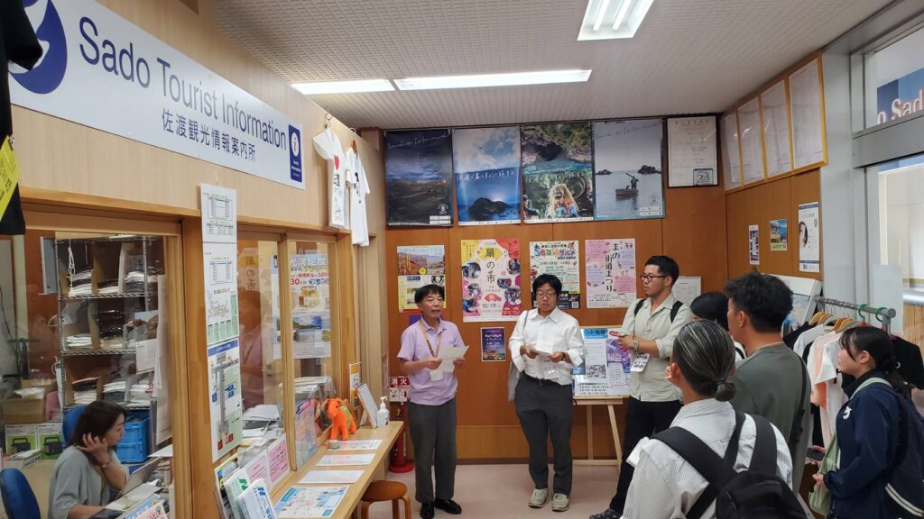 続いては【佐渡汽船】を訪問。沖島のSさんは島と本土を繋ぐ船の船長をしていることから、QRコードの導入や、発券方法について質問。福江島で運行しているジェットフォイル ペガサスが昔は佐渡で使われていたなど、佐渡島民でも知らないアレコレがたくさん! さすが歴史が長い会社…!