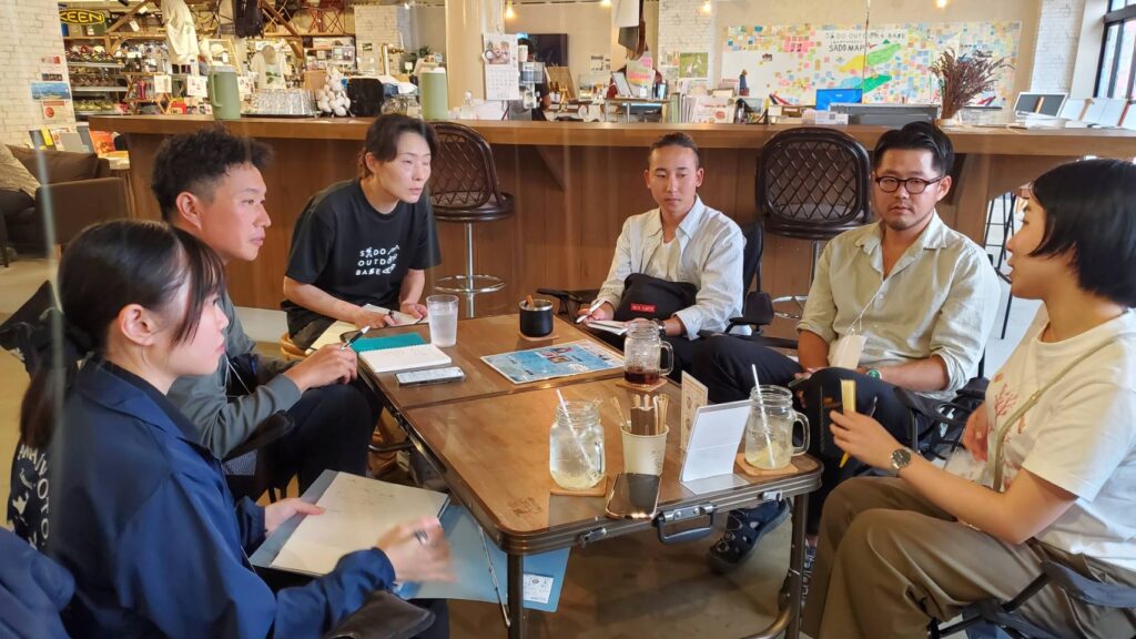 佐渡との違いについてという議題でも、各班から興味深い話が挙がっていました。今回は交流会に人材養成大学受講者が22名+佐渡島民から約20名の参加がありかなり大所帯! SUIとしても学びの多い回となりました。
