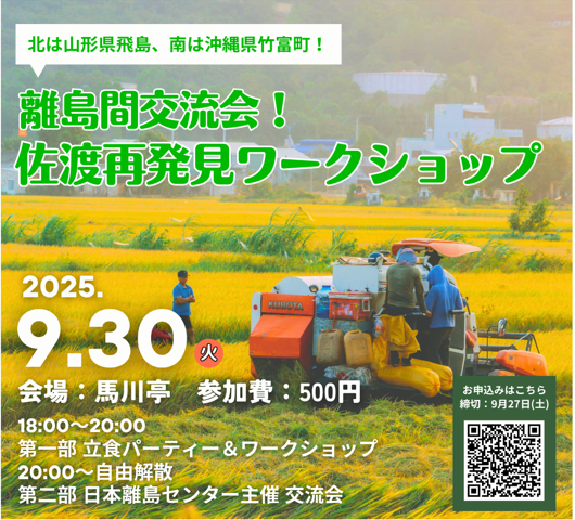 離島センター『島づくり人材養成大学』は、離島に住んでいる人ならどなたでも参加できます。佐渡でコミュニティの活性化や産業振興に取り組んでいるみなさま、ぜひ34期に応募してみてはいかがでしょうか? 詳しくは日本離島センター公式HPにて。